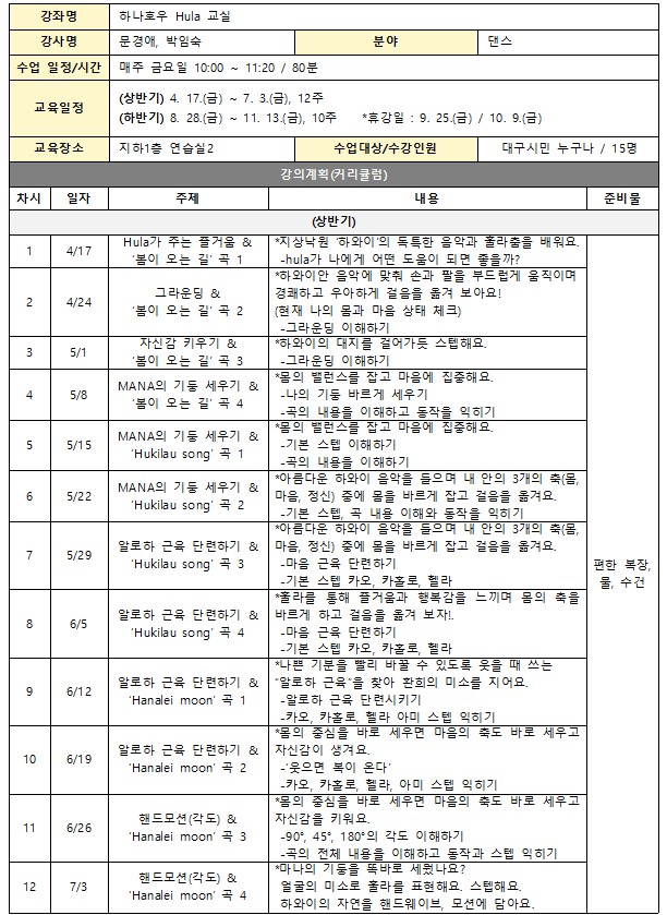 ○ 신청방법 - 해당 교육은 대구생활문화센터 홈페이지 회원가입 후 신청 가능합니다. - 여름 휴강 기간(여름방학)으로 인해 프로그램 신청은 상반기/하반기로 나누어 진행됩니다. (*하반기 프로그램 신청은 7월 28일부터 신청 가능)