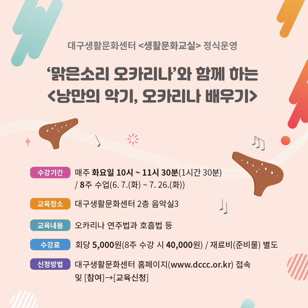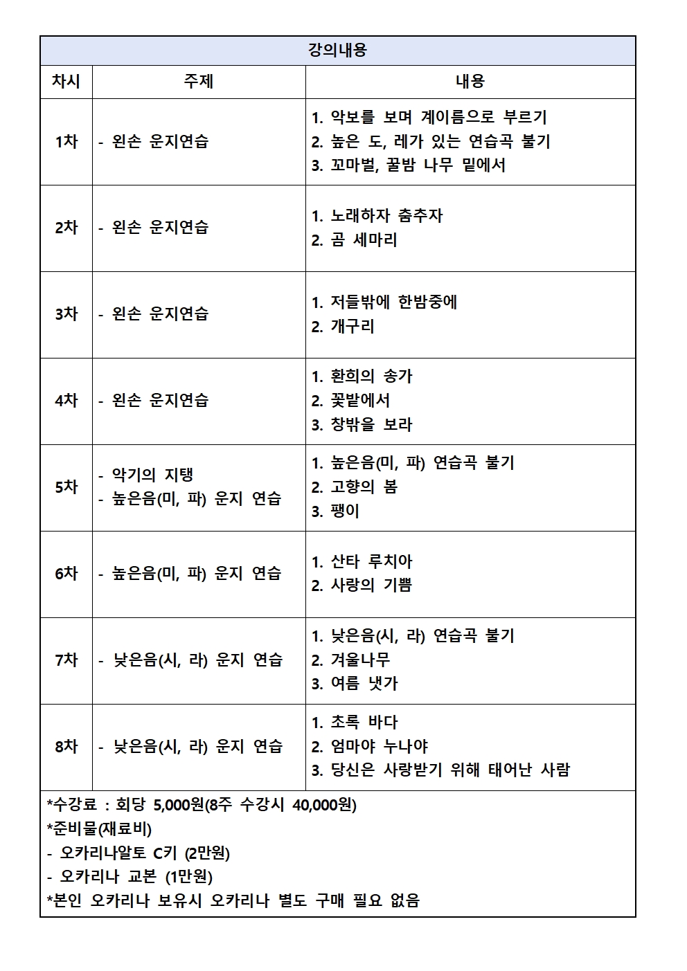 접수마감 / [정식운영] 낭만의 악기, 오카리나 배우기(매주 화요일)