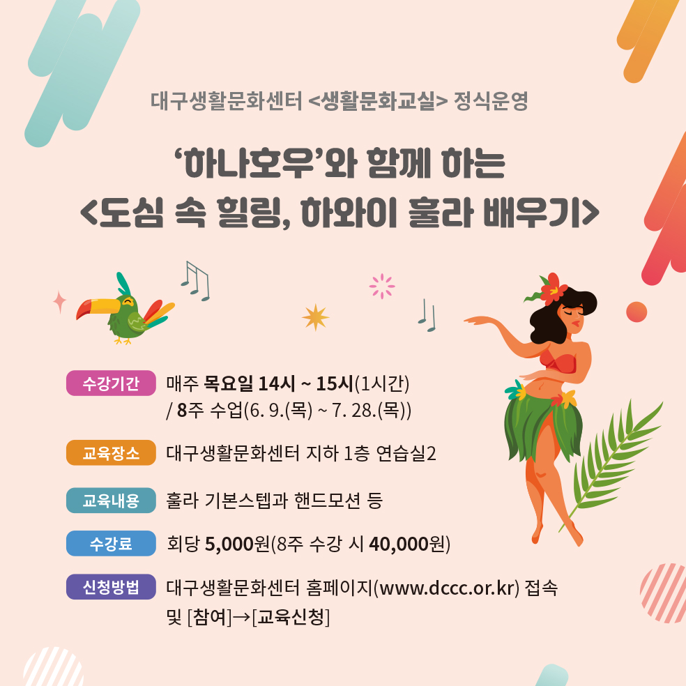 접수마감 / [정식운영] 도심 속 힐링, 하와이 훌라 배우기(매주 목요일)