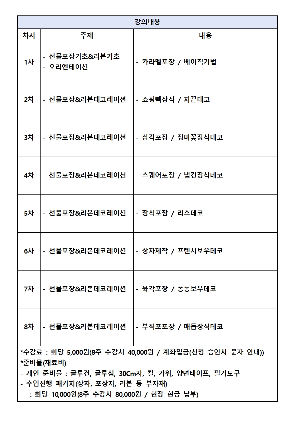 *수업내용 및 일정은 사정에 따라 변경될 수 있습니다.