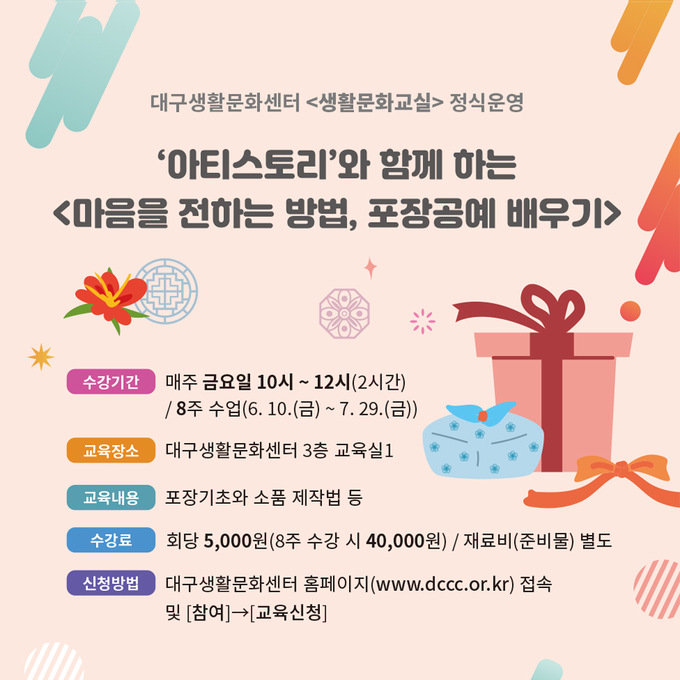 접수마감 / [정식운영] 마음을 전하는 방법, 포장공예 배우기(매주 금요일)