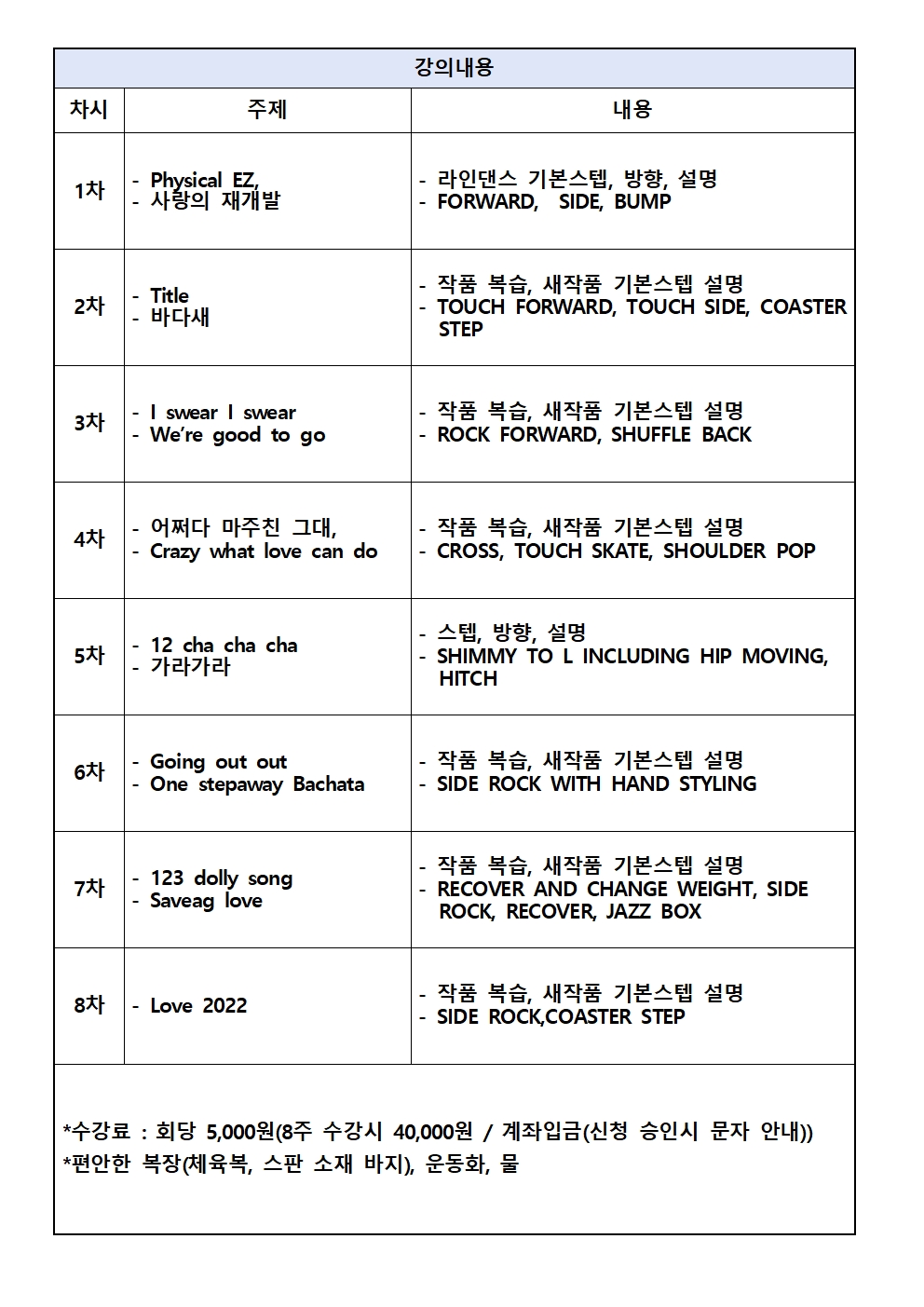 접수마감 / [정식운영] 우울감 타파, 건강 라인댄스 배우기(매주 토요일)