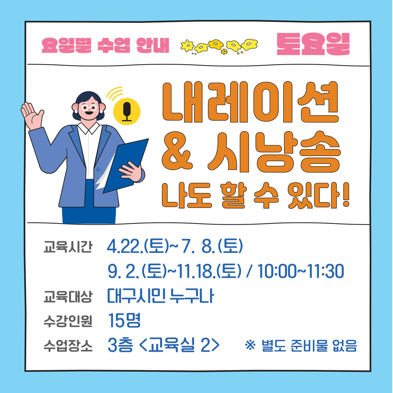4.22.(토) ~ 7.8.(토) , 9.2.(토) ~ 11.18.(토) 매주 토요일 / 총 24주 프로그램 입니다. *7.15.(토) ~ 8.26.(토)는 휴강일입니다.