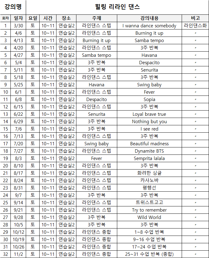 총 32회차/준비물: 라인댄스화