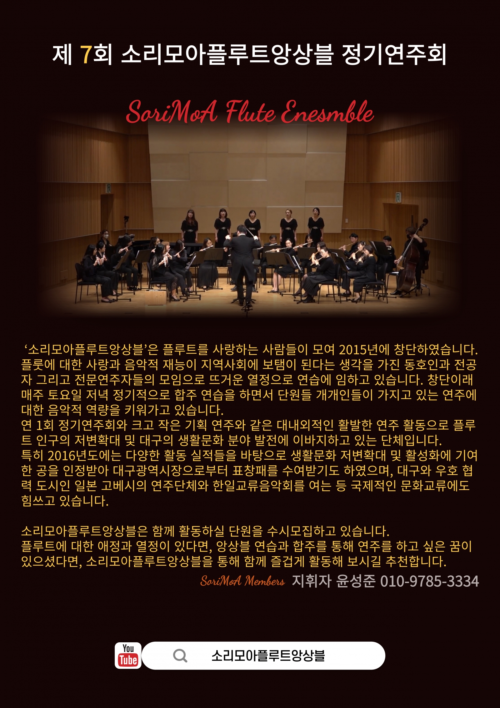 여덟 명의 회원은 저마다 다른 삶의 궤적을 그려왔지만, 팬플룻의 순수한 대나무 관을 타고 흐르는 바람 소리 안에서 우리는 비로소 하나가 됩니다. 홀로 내는 소리는 고독할지라도, 여덟 명의 호흡이 정교하게 맞물릴 때 비로소 세상에서 가장 따뜻하고 완벽한 **'하모니'**가 완성된다는 것을 믿습니다.
